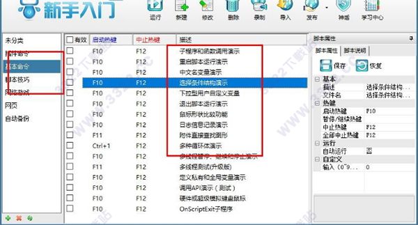 8.功能強(qiáng)勁,腳本句子豐富多彩,并擁有強(qiáng)大的拍攝鍵盤鼠標(biāo)操控的功能;