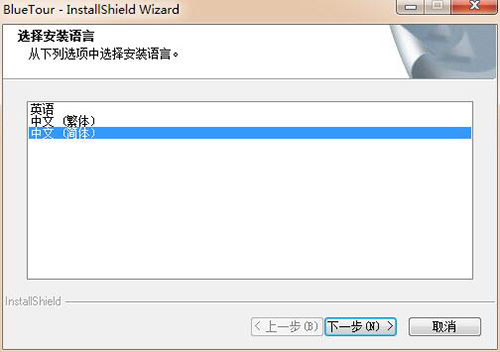 2、點(diǎn)擊安裝程序”BlueTour.exe“進(jìn)行安裝,安裝語言選擇簡體中文;
