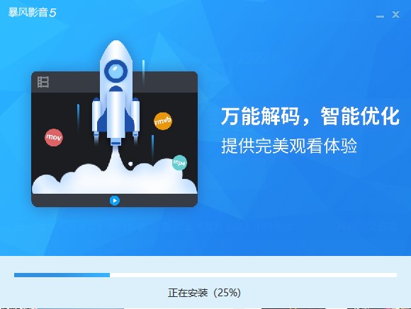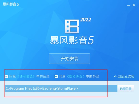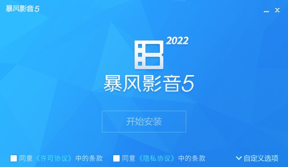 1、點擊暴風(fēng)影音5的安裝包,在彈出的安裝界面中點擊開始安裝