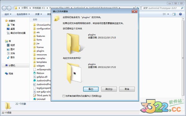 1、將壓縮包中“Justinmind6.8.0_For_Win漢化包”中全部復制到軟件根目錄下,默認目錄為:C:\Program Files (x86)\Justinmind\Justinmind Prototyper 6.8.0,進行替換操作