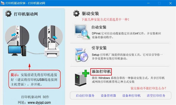 5、以下是幾種安裝方式的安裝方法,安裝前請(qǐng)將打印機(jī)連接好并開機(jī)