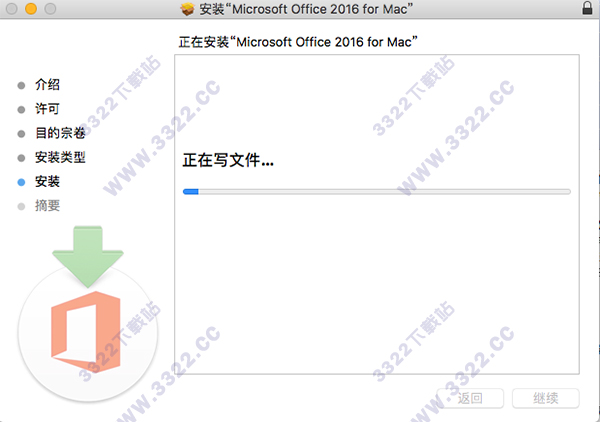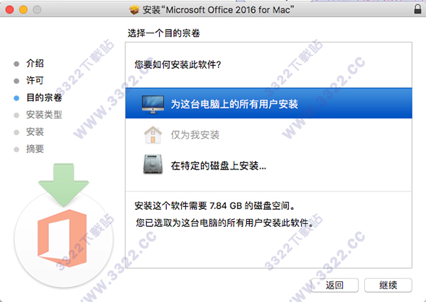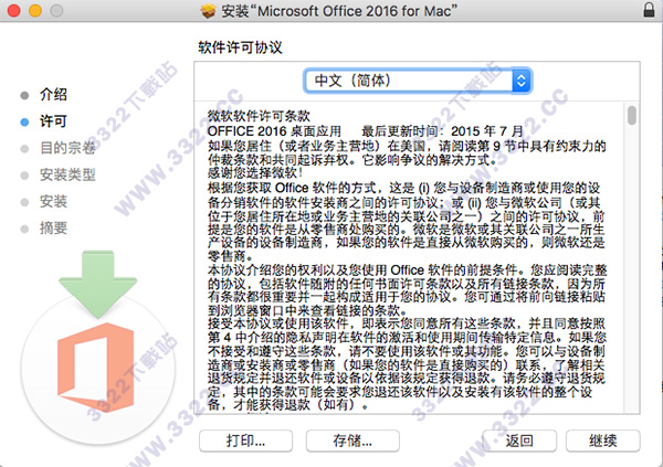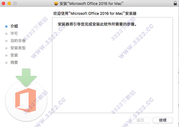 2、之后我們雙擊運行“Microsoft_Office_2016_15.40.17110800_Installer.pkg”,安裝包,會彈出一個安裝器簡介窗口,我們點擊“繼續(xù)”,開始進行安裝