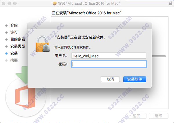 6、此時如果你的Mac設(shè)置了開機密碼的話,你需要輸入一次你Mac的開機密碼才能夠繼續(xù)進行安裝,如果未設(shè)置開機密碼的Mac用戶,請忽略這一步