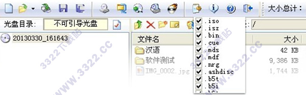 7、支持絕大多數(shù)已知光盤映像文件格式(.ISO,.TAO,.BIN,.IMG,.CIF,.NRG,.FVD等),而且把它們儲存為標(biāo)準(zhǔn)化的ISO格式文件。