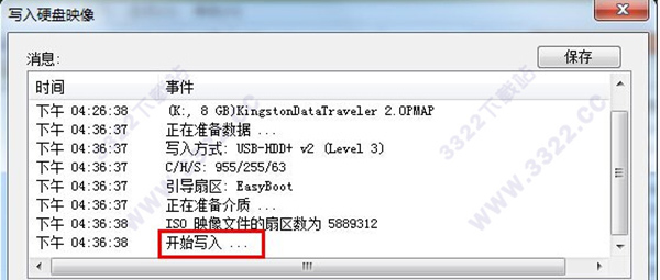 5、選擇完成好,點(diǎn)擊:寫入,寫入中,請耐心等待,時間長短根據(jù)系統(tǒng)鏡像的大小定,一般為10分鐘內(nèi)即可