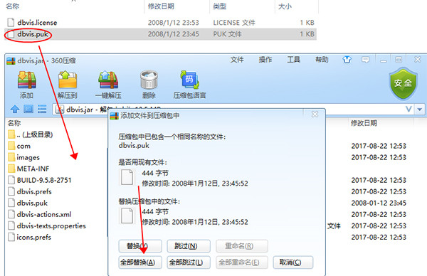 4、把lib/dbvis.jar里面的這個(gè)文件dbvis.puk替換掉(用winrar打開(kāi)dbvis.jar即可替換)