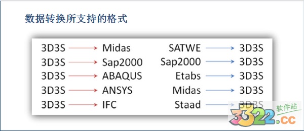 4、增加完善了模型數(shù)據(jù)接口功能,支持的格式包括IFC格式、SAP2000、ETABS、MIDAS、ANSYS、ABAQUS、STAAD