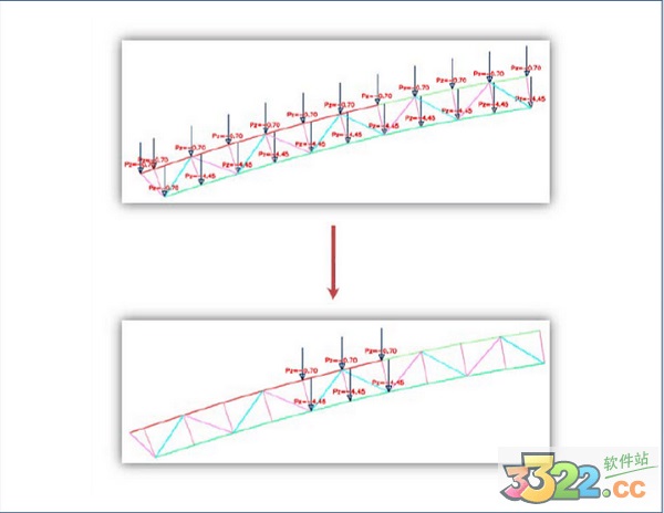7、新增將模型內(nèi)力圖、位移圖等3D3S實(shí)時(shí)顯示效果保存為dwg文件的功能