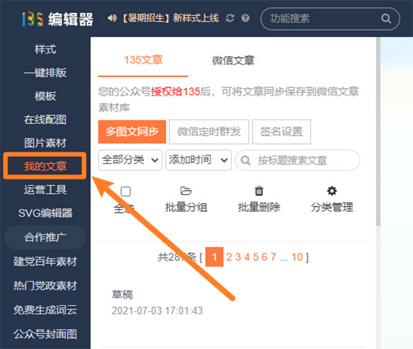點(diǎn)擊左側(cè)【我的文章】,即可找到剛剛已經(jīng)保存的內(nèi)容