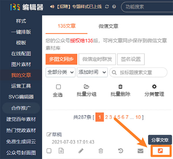 在【我的文章】中,點(diǎn)擊【分享文章】按鈕,提交審核通過(guò)后,就可以生成永久鏈接進(jìn)行分享