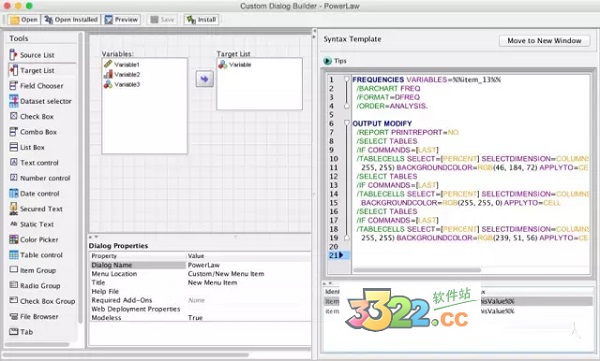 ▲您可以指定將定制對(duì)話框安裝到安裝對(duì)話框時(shí)創(chuàng)建的新子菜單。您還可指定是將定制對(duì)話框安裝到所有窗口類型(“數(shù)據(jù)編輯器”、“語法”和“查看器”)還是僅安裝到特定窗口類型