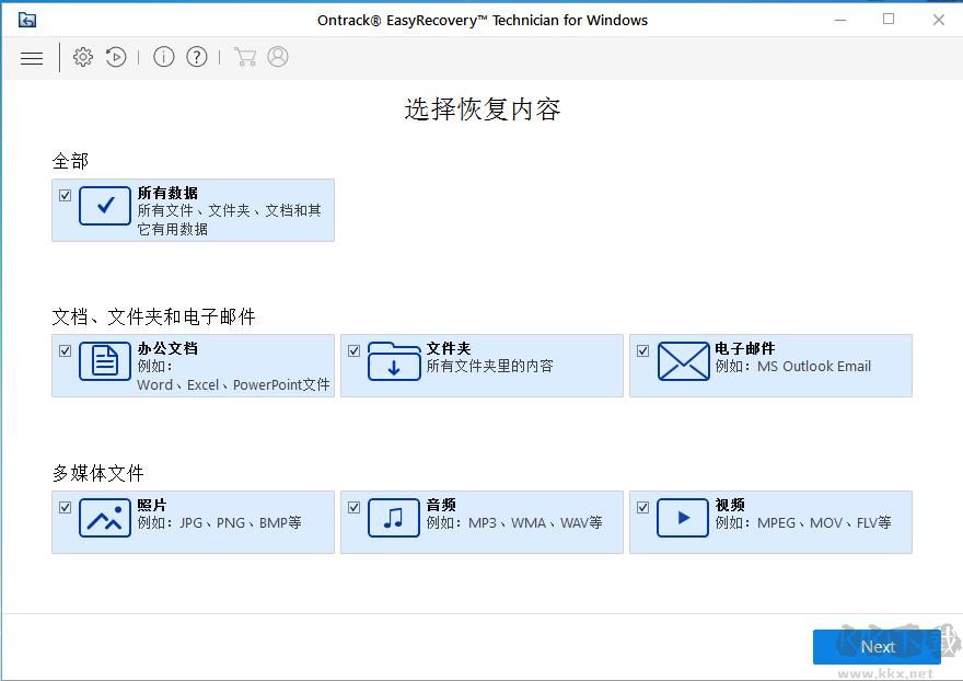 2、運行OntrackEasyRecoveryforWindows.exe 就可以打開軟件進行恢復了。