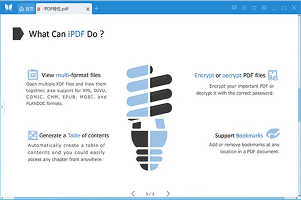 支持PDF,Mobi等常用閱讀文檔格式和圖片格式以及多種開(kāi)發(fā)語(yǔ)言文檔;支持Office文檔在線和本地互轉(zhuǎn),識(shí)別率更高,轉(zhuǎn)換效率更快;支持PDF文檔加密和解密,文檔閱讀更加安全;閱讀支持高亮,下劃線,批注等功能,多種閱讀模式一鍵切換,體驗(yàn)最佳的閱讀模式,工作學(xué)習(xí)更加方便高效;智能開(kāi)啟文檔,調(diào)整最佳閱讀比例,讓閱讀更加有效;郵件一鍵發(fā)送,簡(jiǎn)單快捷。