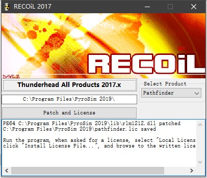 3、軟件成功安裝后,運(yùn)行破解文件Patch.exe,選擇pyrosim2019的安裝目錄,點(diǎn)擊Patch and Lincense;