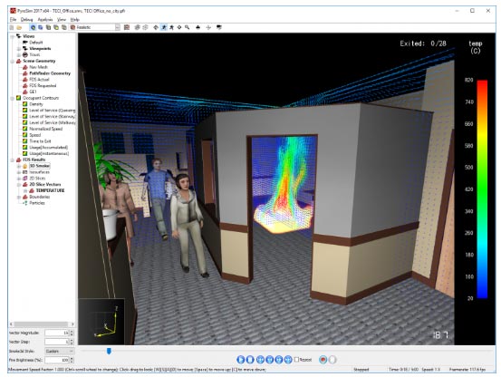 查詢濃煙,環(huán)境溫度,速率,毒副作用和FDS講解的別的導(dǎo)出。根據(jù)在優(yōu)化照相機(jī)和信息可視化的同步進(jìn)行拍攝來即時(shí)創(chuàng)建短視頻,或者利用模型設(shè)定備好視覺效果導(dǎo)視系統(tǒng)。還可以在NIST所提供的Smokeview中間輕輕松松轉(zhuǎn)換,也可以用與PyroSim具備相近頁面的ResultsViewer,該頁面還能夠集成化Pathfinder乘客挪動(dòng)結(jié)論。
