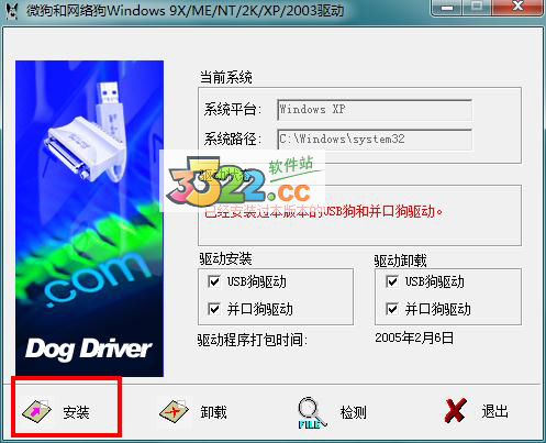 二、在彈出的“微狗和網(wǎng)絡(luò)狗windows 9x等驅(qū)動”點(diǎn)擊“安裝”