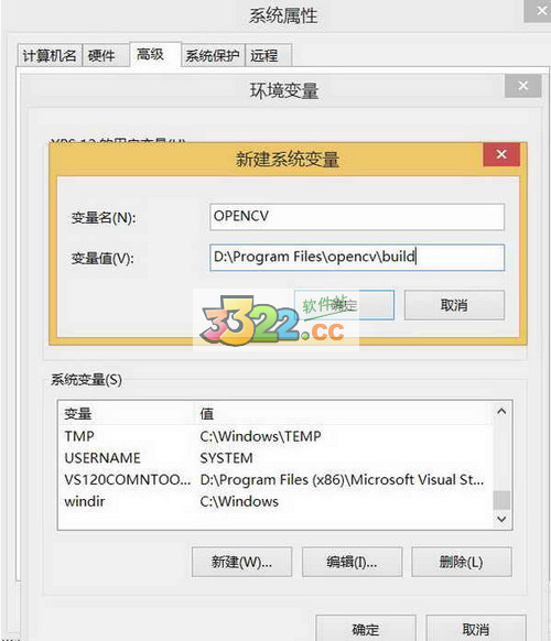 在系統(tǒng)變量里面新建變量,名為 OPENCV ,值為自己解壓opencv路徑下的build路徑,如 D:\Program Files\opencv\build。