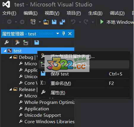 屬性管理器 -> 右鍵 "test"(工程名) -> 添加現(xiàn)有屬性表