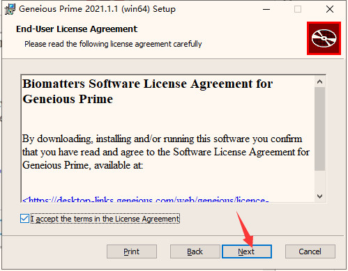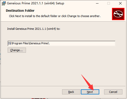 3、選擇安裝位置,默認路徑為“C:\Program Files\Geneious Prime\”,建議最好不要安裝到系統(tǒng)盤(C盤)
