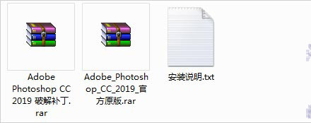 1、首先鼠標(biāo)雙擊右鍵下載并解壓軟件壓縮包,之后得到ps cc2019官方原版及破解補(bǔ)丁