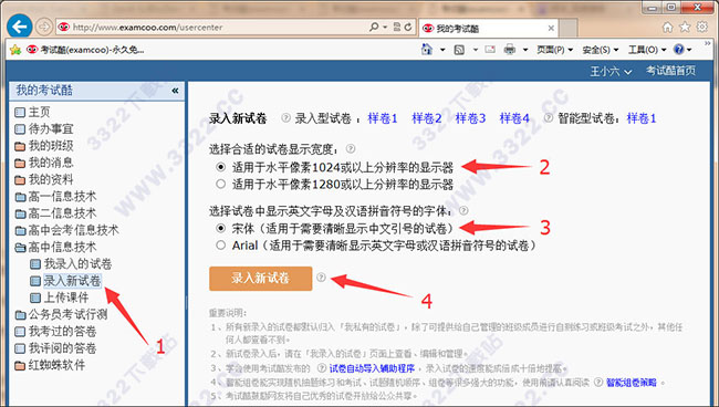 3.如圖箭頭4處所示,點擊“錄入新試卷”按鈕。