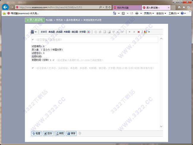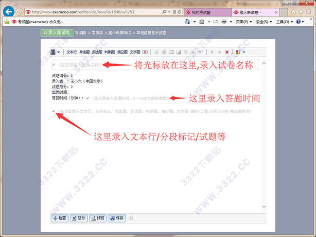 4.打開的窗口如下圖所示,這就是“錄入新試卷”頁面。
