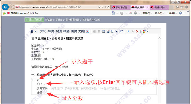 通過如下步驟進(jìn)入“錄入新試卷”頁面。