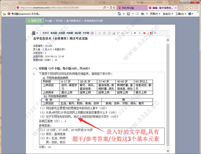 五、如何錄入文字題(簡答題/計算題/分析題/問答題等)