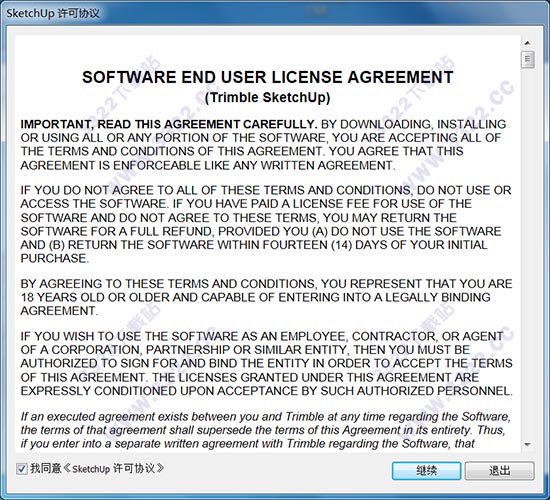 9、之后彈出軟件,打開SketchUp.exe就可以進(jìn)入設(shè)計界面,點擊接受協(xié)議,如圖所示: