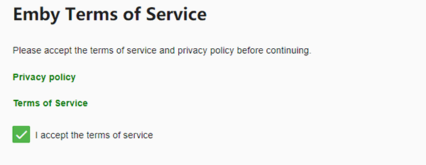9、最后一步就是同意 Emby 協(xié)議的頁面了,打上勾勾直接下一步就可以。