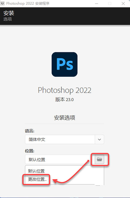 6、雙擊“Set-up.exe”,選擇簡體中文語言,自定義安裝目錄安裝ps2022;