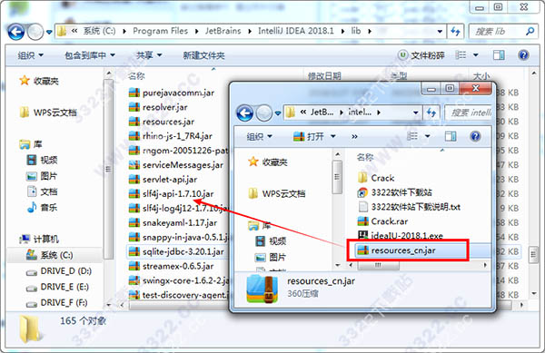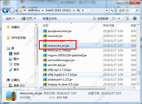 2.再將漢化補(bǔ)丁“resources_cn.jar”復(fù)制入內(nèi)即可,默認(rèn)安裝路徑為C:\Program Files\JetBrains\IntelliJ IDEA 2018.1\lib