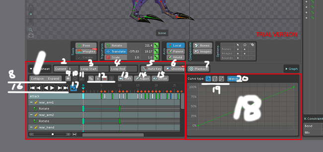 18.曲線編輯器:本來這里才應(yīng)該是動畫師的主戰(zhàn)場。不過Spine中,曲線編輯器只算是個配角了。只能顯示兩幀之間的過度。