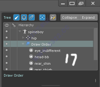 c)顯示層級:顯示層和骨骼層級是兩個概念。圖片前后遮擋關(guān)系,在這里調(diào)整。