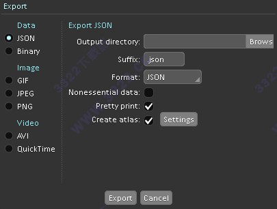 Spine 能將項目中的動畫導(dǎo)出為 JSON 或二進(jìn)制格式文件,它們能在 Spine 運(yùn)行時庫中完美的再現(xiàn)。 Spine 同時還可以導(dǎo)出 GIF 動畫, PNG 或 JPG 序列圖,還有 AVI或 QuickTime 的視頻文件。