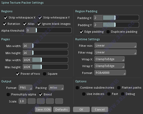 Spine能將圖片打包成紋理貼圖集,這能提高你在游戲中的渲染效率。Spine 的紋理貼圖打包工具擁有很多功能比如剝離空白區(qū)域,旋轉(zhuǎn),自動縮放等等…(主要目的是為了充分利用空間)