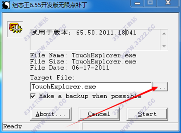 3、運(yùn)行在本站下載的該軟件開發(fā)版無(wú)限點(diǎn)補(bǔ)丁工具,可以將TouchExplorer變量點(diǎn)數(shù)由64點(diǎn)提高到6萬(wàn)個(gè)點(diǎn),點(diǎn)擊此處選擇該軟件打開