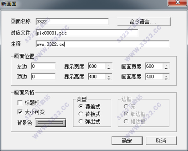 8、用戶根據(jù)需要輸入畫面數(shù)據(jù),點(diǎn)擊確定