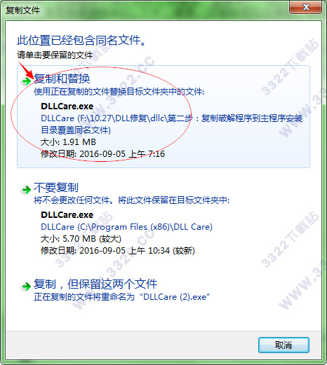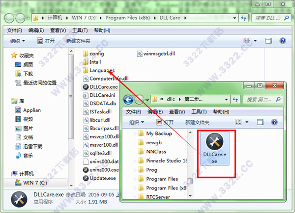 1.安裝好后,先不要打開軟件,回到數(shù)據(jù)包中將破解文件“DLLCare.exe”復(fù)制到軟件的安裝目錄中“C:\Program Files (x86)\DLL Care”