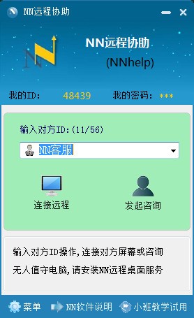 NN遠程桌面工具軟件是一款遠程控制軟件,被控制方和控制方需要都安裝軟件后才能進行遠程操控。安裝了NN遠程桌面之后打開軟件會分配隨機id,使用隨機ID連接后,我們就能過給對方發(fā)送消息、截屏、請求遠程協(xié)助等等,多樣化的分辨率可以隨心選擇。