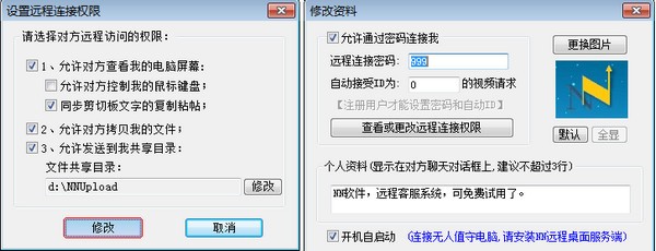 可設(shè)置遠程權(quán)限(是否允許控制電腦,允許下載文件等),可設(shè)置是否允許通過密碼連接自己(注冊帳號可設(shè)置密碼)。