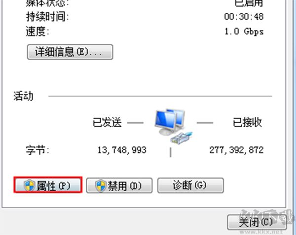 4、在彈出的“本地連接狀態(tài)”對(duì)話框中點(diǎn)擊“屬性”;