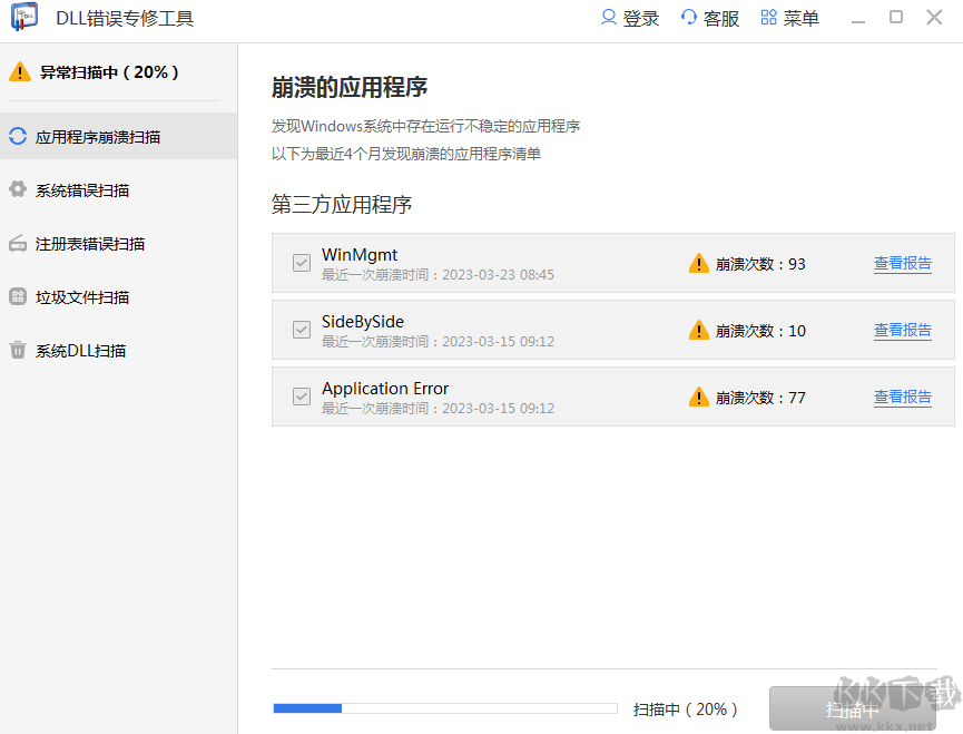 (1)掃描和檢測DLL文件錯誤:該軟件可以自動掃描和檢測系統(tǒng)中的DLL文件錯誤,并給出詳細的錯誤報告。