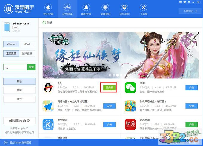 5.下載安裝完成后,愛思助手PC端會顯示已安裝,手機上也會自動生成快捷方式。