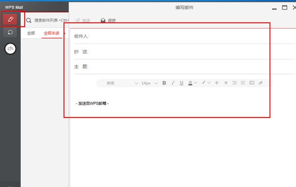 點(diǎn)擊筆狀按鈕可以編寫郵件