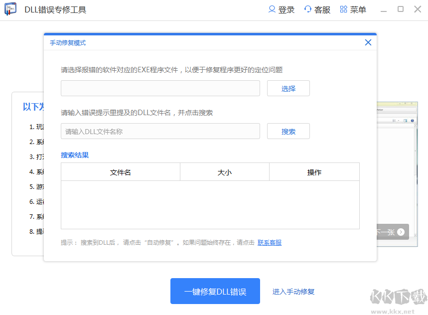 2.選擇一鍵修復(fù)DLL錯誤或者進(jìn)入手動修復(fù)
