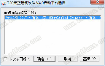 1、首先雙擊打開桌面上的T20天正建筑,選擇AutoCAD平臺。