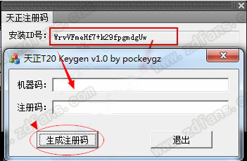 3、然后打開軟件包,運行注冊機文件T20Keygen_v2.00.exe,選中安裝IDh號復(fù)制到注冊機的機器碼中,并點擊“生成注冊碼”按鈕。