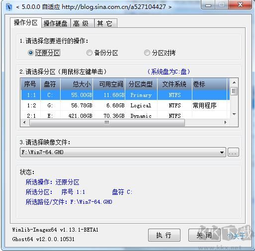 1、智能判斷當前運行的Windows或PE是32位還是64位,如果是32位調(diào)用GHOST32/32位的ImageX,如果是64位則調(diào)用GHOST64/64位的ImageX。64位速度比32位要快,支持多核多線程備份還原才最快。