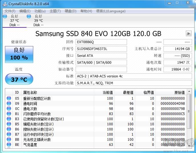 2、硬盤寫入量、通電次數(shù)、通電時(shí)間(使用時(shí)間)
